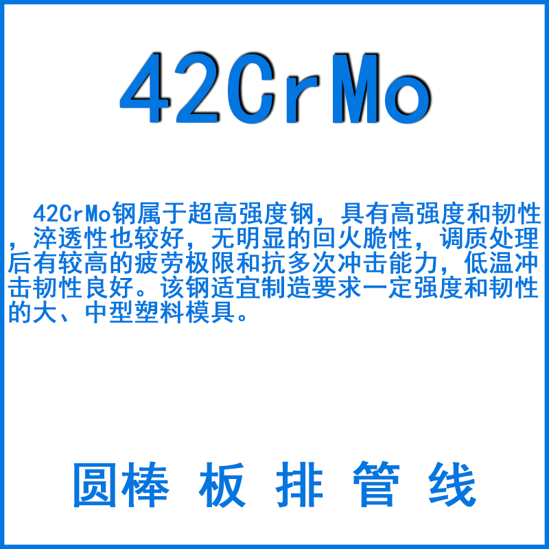 42CrMo鋼屬于超高強度鋼,具有高強度和韌性,淬透性也較好,無明顯的回火脆性,調質處理后有較高的疲勞極限和抗多次沖擊能力,低溫沖擊韌性良好。該鋼適宜制造要求一定強度和韌性的大、中型塑料模具。