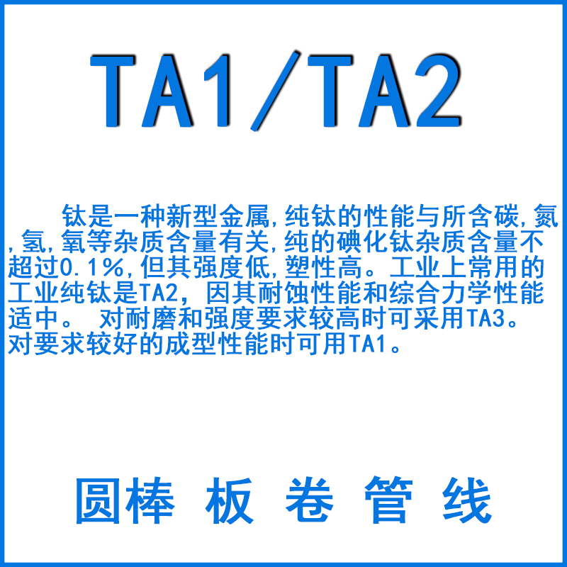 • 工業(yè)上常用的工業(yè)純鈦是TA2,因其耐蝕性能和綜合力學(xué)性能適中。?對耐磨和強(qiáng)度要求較高時可采用TA3。對要求較好的成型性能時可用TA1。